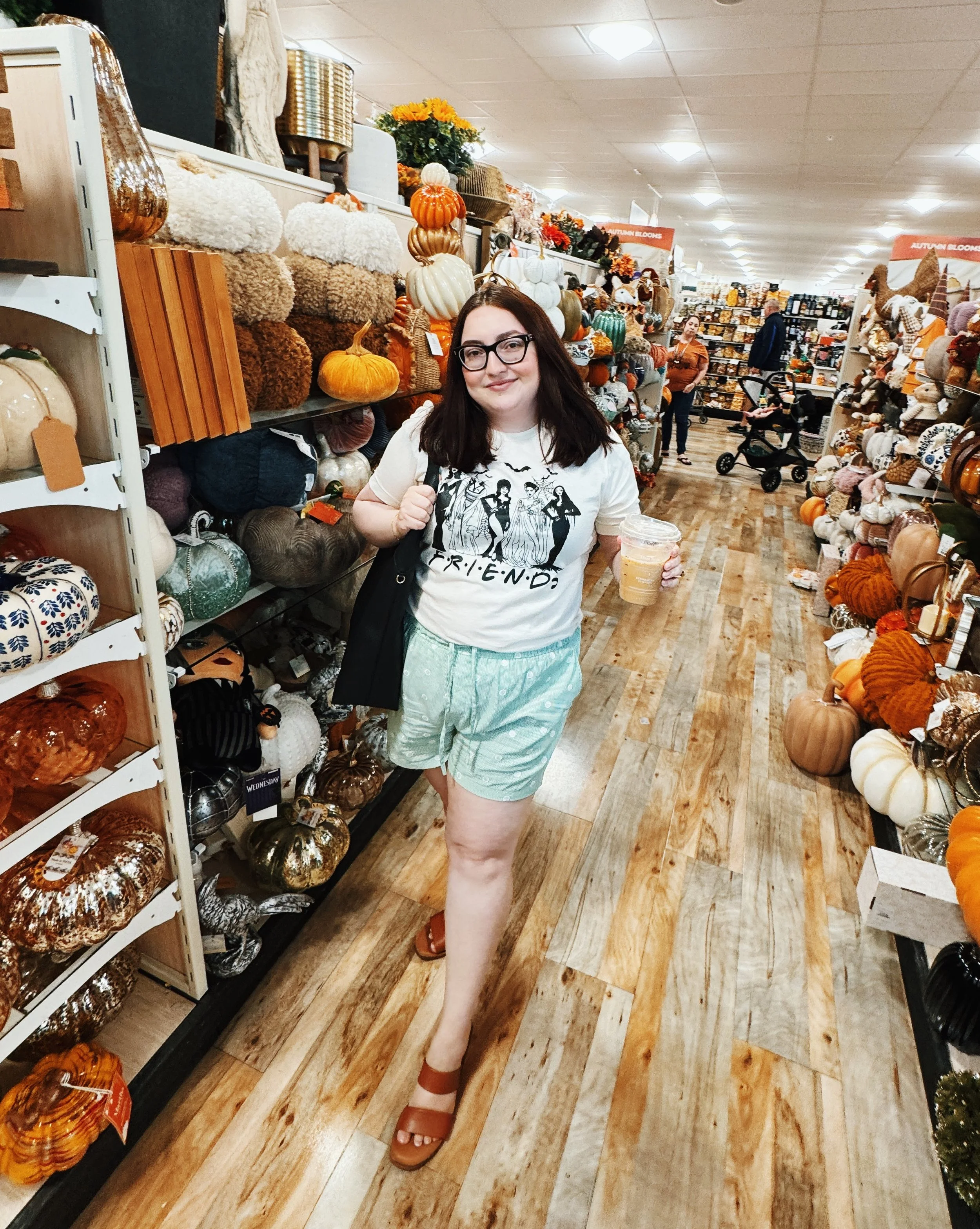 These shorts were such a fun staple this month - I wore them everywhere, including on my annual fall shopping trip with friends! The embroidered detail gives them a unique, elevated touch while still feeling casual and comfy. They do run small (the reviews weren’t lying!), and I probably would’ve been more comfortable in a 1X, but the XL still worked. I paired them with my spooky “FRIENDS” tee for an easy, fall-themed outfit.